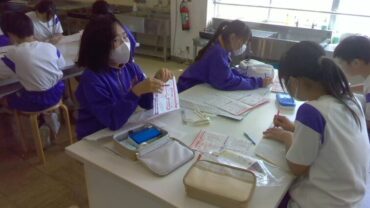 今日は、ぬいしろとなる部分を測って、しるしをつけました。次はミシン縫い、アイロンがけですね。5年生での学習を生かして頑張ります。