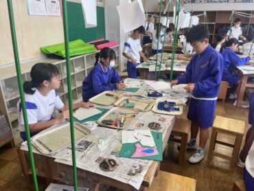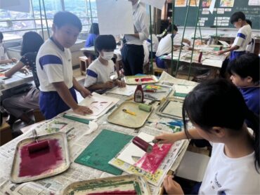 図画工作科では、スチレンボードを使った版画を制作しています。