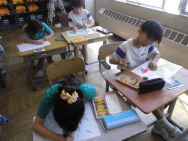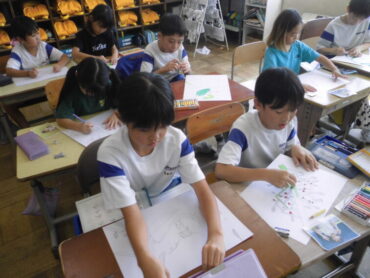2025.9.26 2年生 2年生 野菜とぼく・わたし 図画工作科の学習では、1学期に育てた野菜の成長やお世話を振り返りながら「野菜とぼく・わたし」という作品作りに取り組みました。 大きく描いた野菜と、おいしそうに食べる様子や楽しく遊ぶ様子を思い思いに描いていました。 完成が楽しみです。