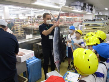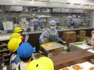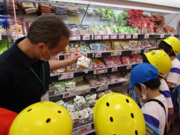 近くのスーパーマーケットに行き、お店のバックヤード等、普段は入れない場所も見学させていただきました。様々な工夫を見つけた子どもたちは、目を輝かせながらお店の方のお話を聞き、たくさん質問をしていました。