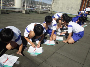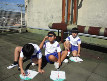 2025.10.21 3年生 3年生 理科 かげの動きを調べる 理科の学習で、影の向きが変わっていることに気づいた3年生は、影の向きが1日を通してどのように変化していくかを観察しました。 観察を通してどのような気づきがあったのか、次の授業が楽しみです。