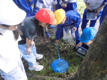 虫が苦手な子供は勇気を出して少し触れ、とるのが得意な子供は張り切ってみんなのために虫を探し、捕まえていました。