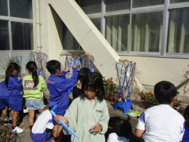 理科の学習で、日なたと日かげの地面の温度を調べました。