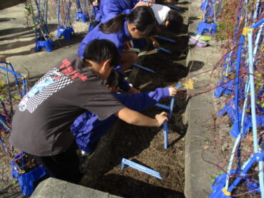 理科の学習で、日なたと日かげの地面の温度を調べました。