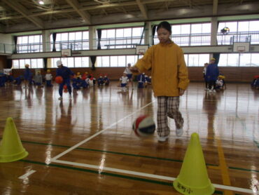 ドリブル、シュート、パスの強弱やコントロールが大切だと気付き、全体練習を始めました。