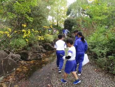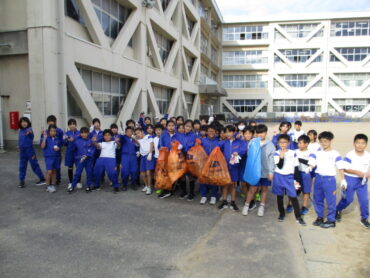 4年生は総合的な学習の時間の学習でふれあい公園のゴミ拾いに行きました。