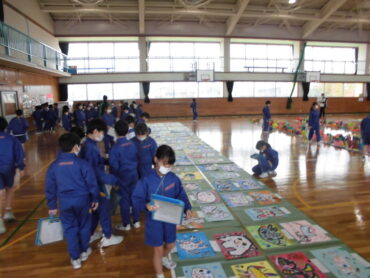 2025.11.13 4年生 4年生 作品鑑賞 体育館で作品鑑賞をしました。 子供たちは、普段見られない他の学年の作品を興味深く鑑賞していました。 友達に褒められた子はとてもうれしそうでした。 明日は、保護者のみなさんに見ていただきます。楽しみですね。
