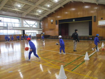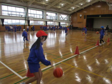 2025.12.2 3年生 体育「ポートボール」 3年生は体育で「ポートボール」に取り組んでいます。 仲間とパスをつなぎ、ゴール台に立つ味方がキャッチすると得点になるチームスポーツです。 授業では、ドリブルやパスの練習をした後、班ごとに試合を行っています。 声をかけ合ったり、パスをもらいやすい位置に動いたりして、仲間と力を合わせる楽しさや達成感を感じてほしいと思います。