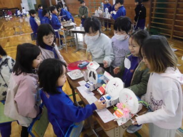 2年生の生活科では、身の回りにある廃材を使っておもちゃを作りました。