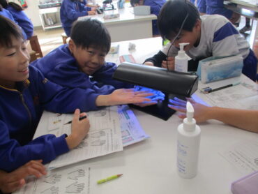 手についたウイルスが体内に入りやすいことや、自分たちの身の回りにはたくさんの菌が潜んでいるということを知りました。