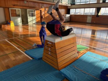初めは、跳び箱の上で前転をすることに怖がっていた子供たちも練習を繰り返すことで少しずつ慣れていき、上手に台上前転ができるようになっていきました。