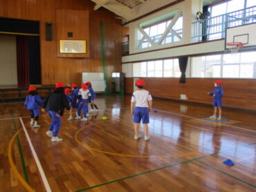 みんなで話し合う姿、コートに立ち相手を想像しながら作戦を練る姿など、子どもたちは意欲的にポートボールに取り組むことができました。