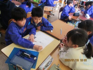 まずは豆電球を点灯させるためには…と、様々な通り道を予想し、実験の準備を行いました。