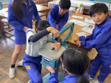 2026.1.22 5年生 5年生 図画工作科「進め!糸のこたん検隊」 図画工作科では、作品づくりに使用する電動糸のこぎりの使い方について学習しました。 今回は、グループに分かれ、糸のこぎりの刃を付ける練習をしました。 次回からは実際に木の板を切って作品を作っていきます。