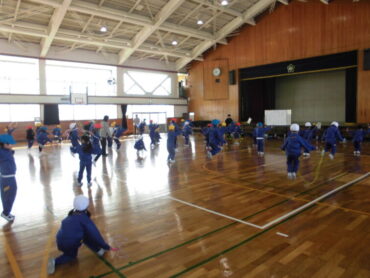 1年生は体育の時間に短なわと大なわ練習に取り組んでいます。