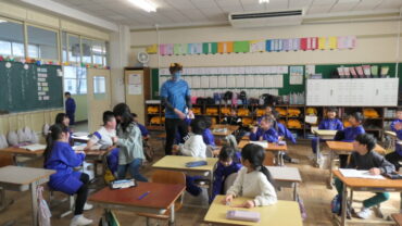 2026.2.3 NEW 1年生 能町小学校に鬼が来た! 今日は節分。 本日の5時間目、1年生の教室にも青鬼さんがやってきました。一瞬驚いた様子を見せた子供たちも、大歓迎の表情に変わりました。 「鬼は外」ならぬ、「鬼さん、こっち来て」状態でした。 青鬼さんも、「とても楽しかった。また来年も能町小学校へ来たいな」と言い残して帰っていきました。 節分には、豆まきをしたりや恵方巻を食べたりして過ごすご家庭もあるかもしれません。ぜひ、行事や料理の意味を話題にして楽しんでいただければと思います。