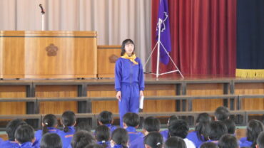 2026.2.24 4年生 5年生 6年生 交通少年団入退団式 4、5、6年生が参加し、交通少年団入退団式が行われました。 6年生は卒業のため退団します。 新たに入団した4年生、そして、リーダーとなる5年生が、交通安全の誓いを堂々と述べました。 これからも、のうまちっ子が安全に登校できるように、下級生を見守ってくださいね。