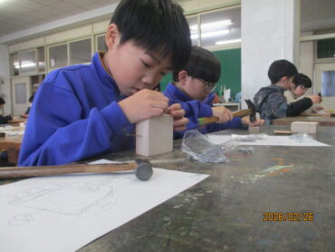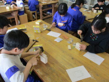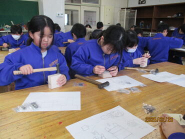 図画工作科では、「トントンくぎを打って」の学習に取り組んでいます。