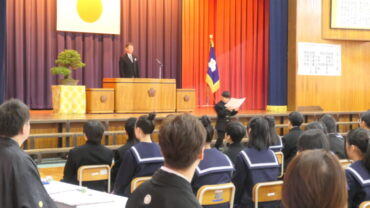 「巣立ち行く皆さんに “一隅を照らす” という言葉を贈ります。一人一人がそれぞれの持ち場で全力を尽くすことで社会全体が明るくなります。自分にできることを一生懸命にやろうと前向きな気持ちでコツコツと取り組むことを大切にしてください。」