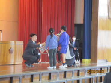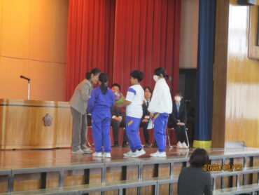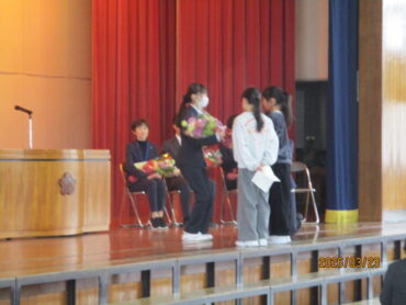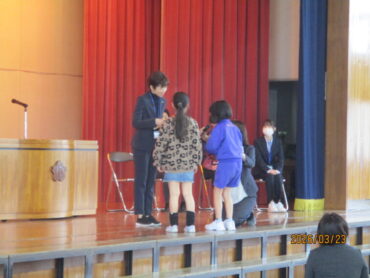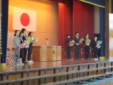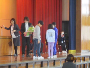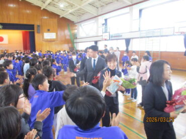 2026.3.23 NEW 全校生 離任式 3月23日(月)、3月で任期が終了する先生方の離任式を行いました。 初めに離任される先生方一人一人が、子供たちとの思い出を話してくださいました。 その後、代表の児童が、お世話になった先生方に感謝の気もちを込めた手紙と花束を渡しました。 最後に「ありがとうの花」の曲と共に大きな拍手で先生方を見送りました。 能町小学校の子供たちのことを一生懸命に考えて教えてくださった先生方、ありがとうございました。